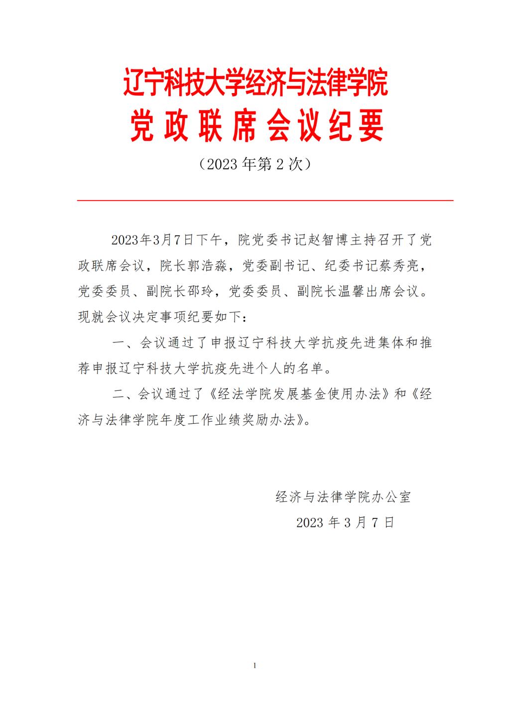 FH体育(国际)官方网站经济与法律学院党政联席会会议纪要(2023年第2次)