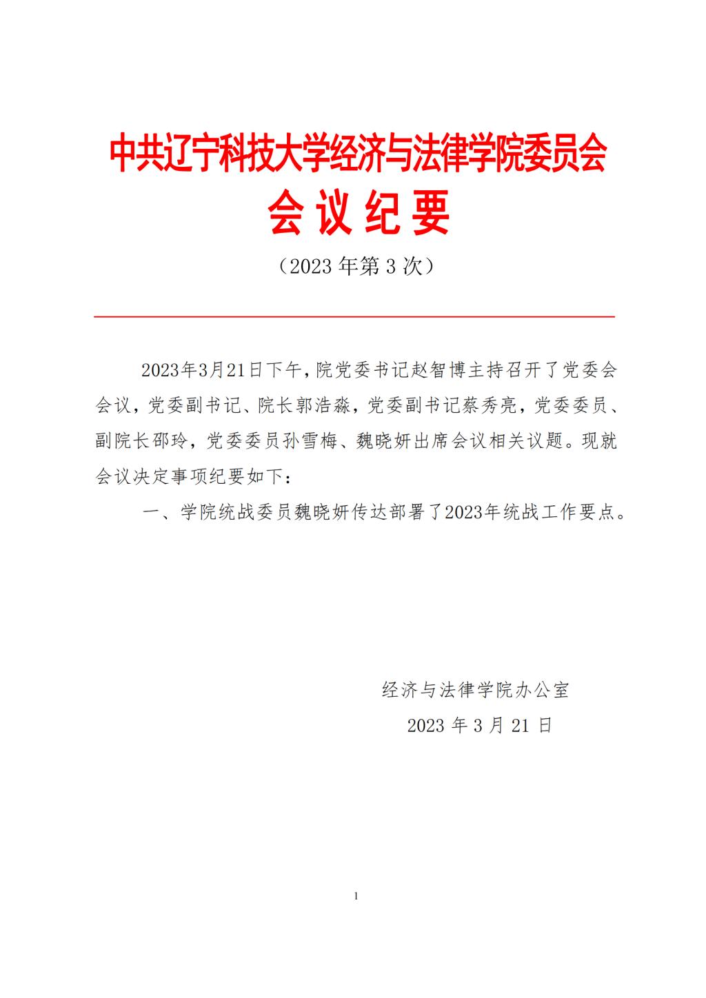 中共FH体育(国际)官方网站经济与法律学院委员会会议纪要(2023年第3次)
