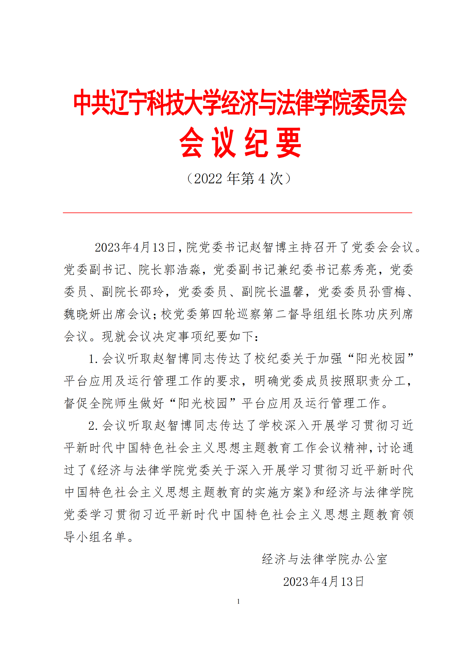 中共FH体育(国际)官方网站经济与法律学院委员会会议纪要(2023年第4次)
