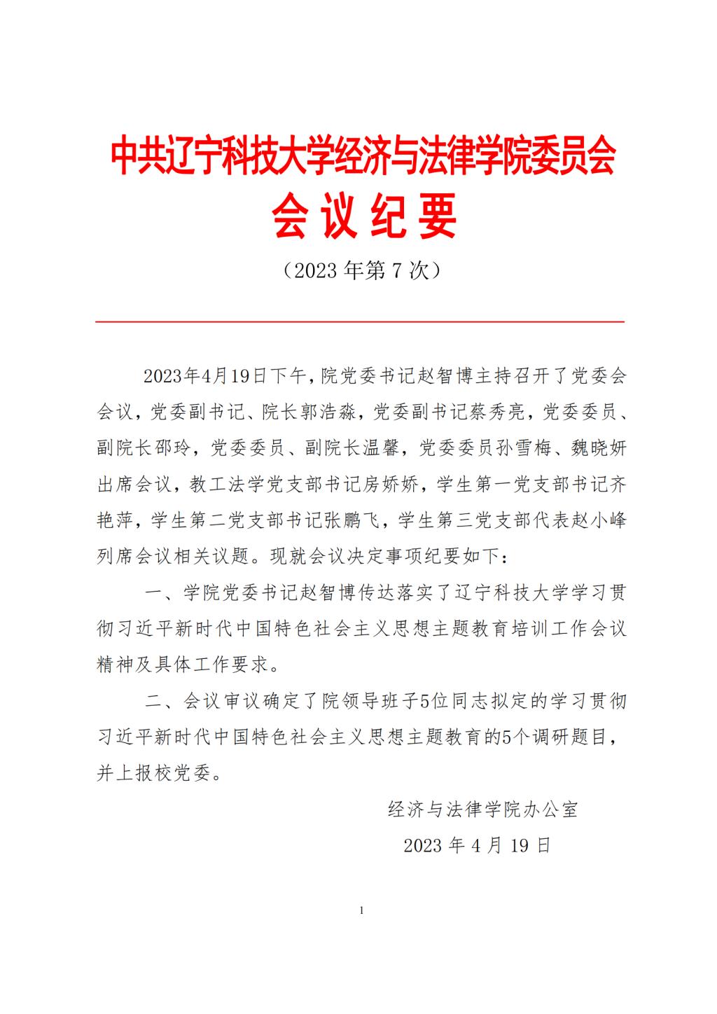 中共FH体育(国际)官方网站经济与法律学院委员会会议纪要(2023年第7次)