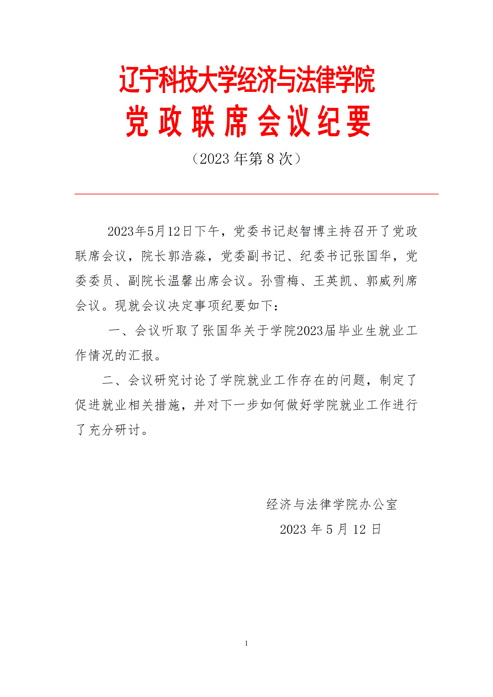 FH体育(国际)官方网站经济与法律学院党政联席会会议纪要(2023年第8次)
