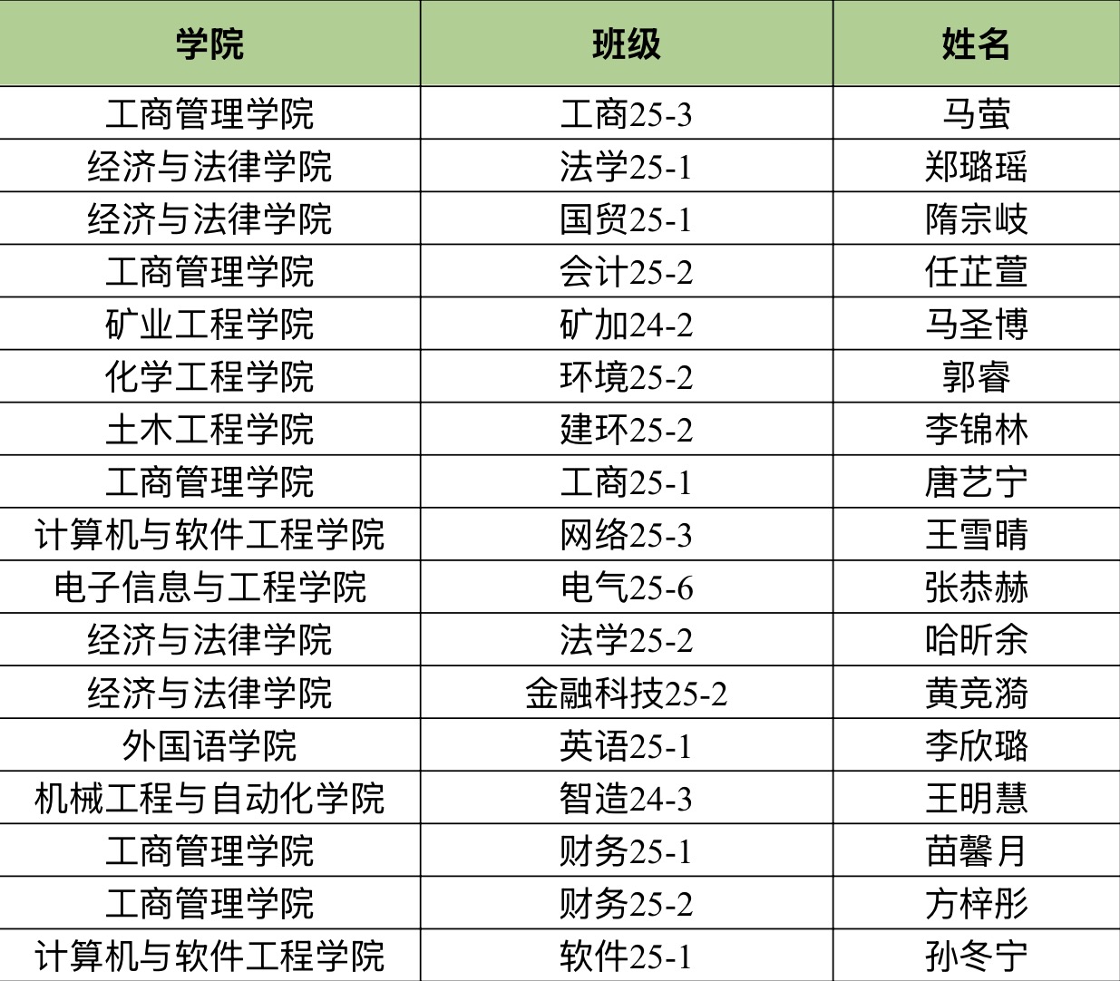 公示期自2025年10月16日至2025年10月22日,如有异议请于公示期内向经济与法律学院团委实名反映情况。