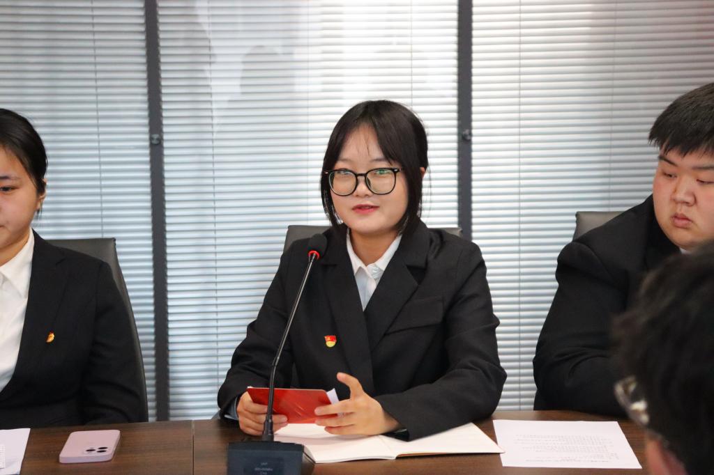 接着,经法学院学生第二党支部书记张鹏飞从支部建设路径、品牌打造成果等方面介绍了支部在思想引领、先锋示范等方面的特色做法。他以“传承红色精神 勇担时代使命”为主题为现场党员上主题党课,结合辽宁“红色六地”精神,通过邀请支部中六位来自红色六地的党员同志作家乡红色文化分享,深刻阐述红色精神的当代意义。他强调,青年党员要把红色基因融入血脉,把初心使命落实到日常学习和实际行动中,在服务师生、服务集体中锤炼担当品质。