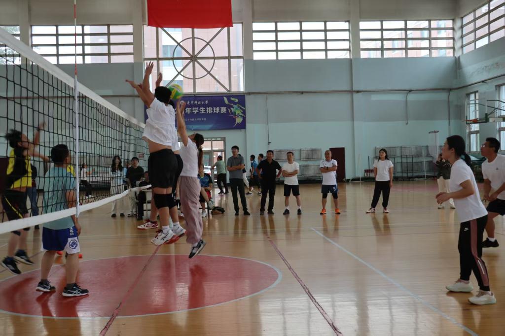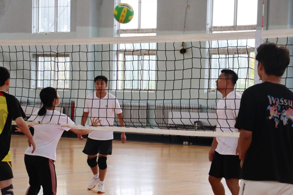 比赛过程中,团委书记张鹏飞凭借丰富的排球经验,根据比赛状态适时暂停,及时召集队员,分析对手战术特点,制定针对性策略。全体队员在不断地配合与磨合中凝聚合力,展现出顽强拼搏的斗志和默契无间的团队精神。