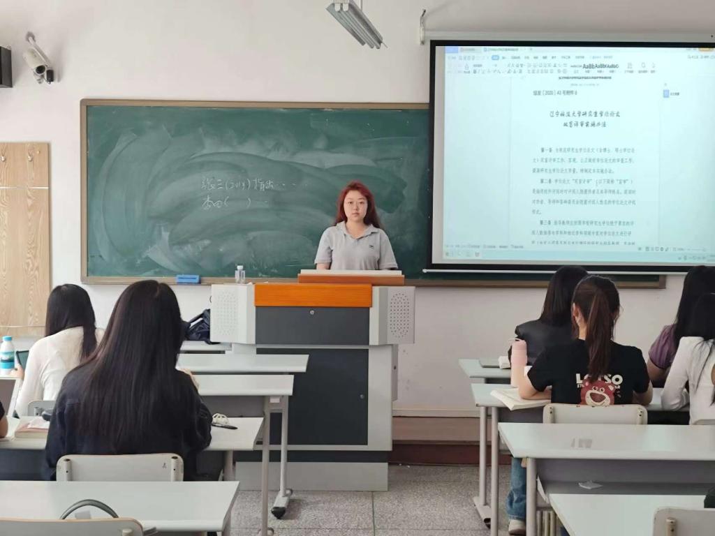 会上,张文婕带领同学们详细解读了研究生院下发的《FH体育(国际)官方网站研究生学位论文质量管理办法》《FH体育(国际)官方网站研究生学位论文双盲评审实施办法》《FH体育(国际)官方网站学术道德规范建设与管理办法》等一系列文件,旨在提醒2022级研究生在论文撰写过程中遵循学术规范,确保论文质量和学术诚信。张文婕指出,盲审是一种公正、客观的评价方式,能够有效减少评审中的主观因素,提高论文评价的科学性和公正性,她提醒同学们在撰写论文时要保持良好的学术操守,杜绝抄袭或数据造假等学术不端行为。