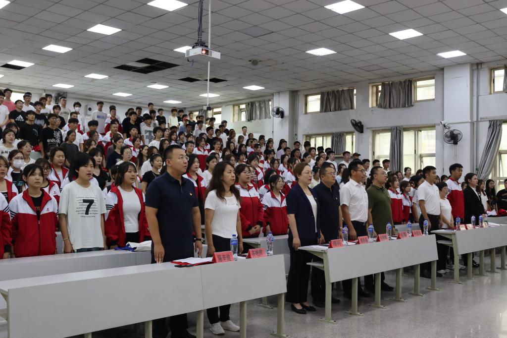 在庄严雄壮的国歌声中,全体师生整装肃立,开学典礼正式拉开序幕。院长郭浩淼首先代表学院向2024级新生的到来表示热烈的欢迎,祝贺他们开启人生新阶段;教师代表陈辛迪对新生表达了期许与祝愿,他希望同学们能学会享受大学生活,积极利用四年的时光充实自己,努力用自己的力量追寻信仰与理想;学院学生会执行主席吴雨纯作为在校生代表发言,她分享了自己几年来的经历和感受,鼓励同学们要充满好奇,斗志昂扬地探索远方的路;金融24-2班田润东作为新生代表发言,他首先分享了自己对于大学校园的初印象,同时表示在今后的大学生活中,要牢记校风校训,努力学习专业知识,提高自己的综合素质,做一个有道德、有纪律、有文化的大学生;金融24-2班薛涵竹母亲作为家长代表发言,她对学院温馨周到的迎新工作表示感谢,并希望刚刚步入大学校园的新同学们能够在这里扬帆起航,通过努力圆满完成学业,不辜负家长的殷切期望与老师的谆谆教诲;典礼最后,学院党委书记赵智博为新生寄语,他对2024级新生提出几点希望:要明确发展目标,做一个踏实进取的人;要懂得感恩,做一个体谅父母的人;是要心存敬畏,做一个能守住底线的人;要勤奋学习,做一个珍惜时间的人;要换位思考,做一个心中有爱的人;要勤于实践,做一个知行合一的人。愿同学们未来既要学好扎实的理论知识,也要具备强劲的实践能力迎接挑战,在新的征程上,乘风破浪,一路生花!
