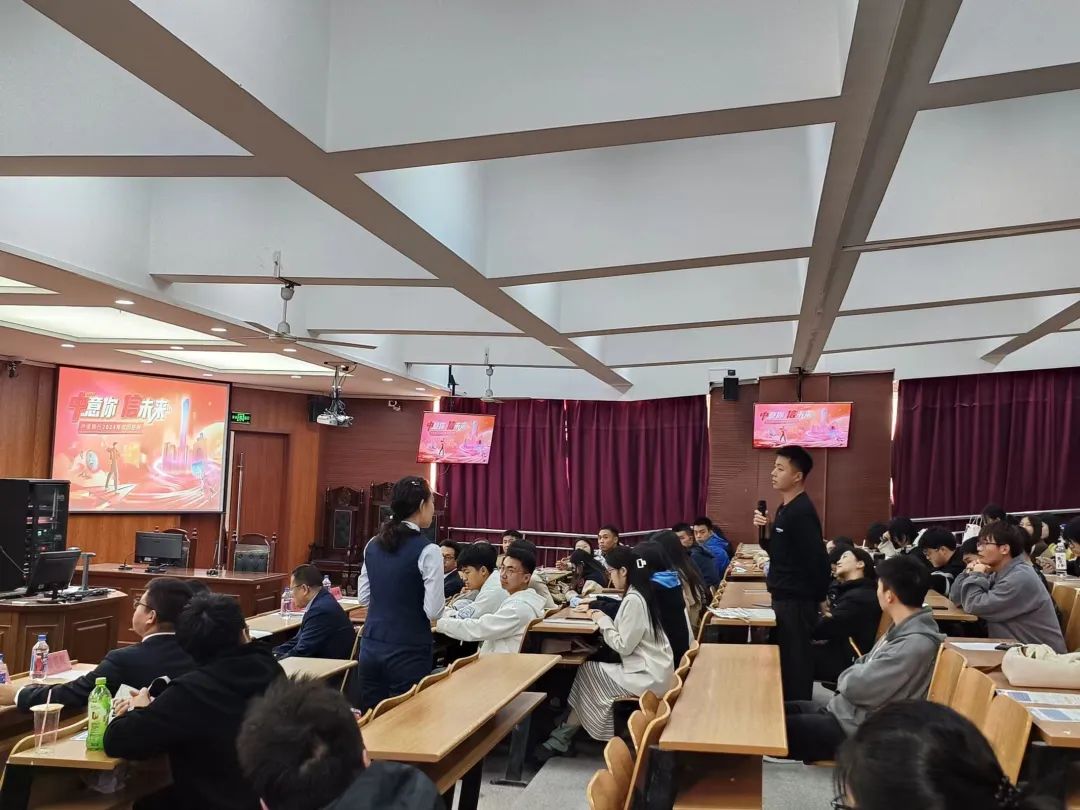 随后,中信银行鞍山分行零售银行部总经理穆云贺(FH SPORTS电信学院毕业生)以学长身份向大家传授经验,介绍了中信银行的多项科技成果,并分享了自身求职经历,带领大家一起体会温度职场,展现了中信银行良好的工作氛围;中信银行鞍山分行人力专员王潇萌则为同学们讲解了福利待遇、薪资补贴、招聘对象、招聘范围等,让同学们对中信银行的招聘信息有了更深入的了解。在互动交流环节中,参会同学积极踊跃,提出了有关工作薪资、实习环境等方面的问题,并得到了详细的解答。