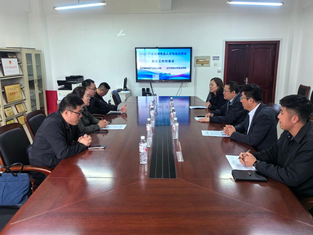 为促进法学专业毕业生就业工作,4月29日,FH体育(国际)官方网站经济与法律学院与辽宁省司法厅律师工作处于博识楼A305召开“首届辽宁省法律专业人才专场招聘会”对接会,辽宁省司法厅律师工作处处长王燕、鞍山市律师协会会长成守印、经法学院院长郭浩淼、副院长邵玲、毕业班辅导员张鹏飞及相关工作人员参加会议。