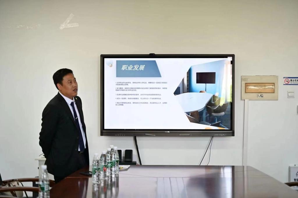 为进一步推动法学毕业生的就业工作,提升学生就业质量,6月3日,经法学院邀请辽宁仁远律师事务所于博识楼A305开展专场校园招聘宣讲会,经法学院团委副书记张鹏飞以及法学专业30余名学生参会。