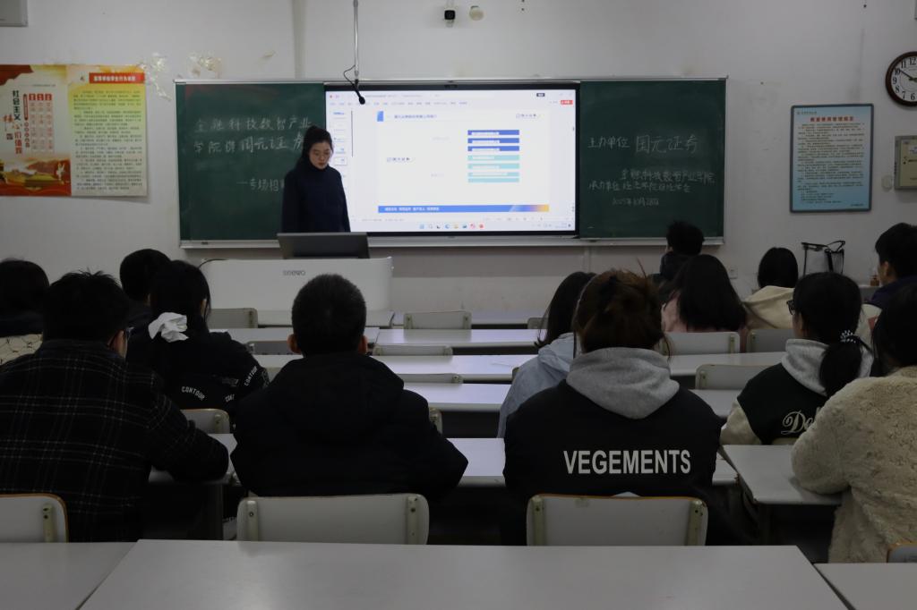 活动伊始,两家公司代表分别围绕企业发展概况、主营业务、办公环境、福利待遇及招聘岗位等方面进行了详细介绍。讲解过程中,企业负责人结合近年行业发展趋势,指出当前证券行业竞争日趋激烈,高学历人才不断涌现,就业形势更为严峻。同时,他们鼓励同学们积极参与实习实践,在先进企业中积累经验,并密切关注各大证券公司官网信息,为2026年校园招聘提前做好准备。随后,国元证券现场组织了简历投递与面试环节,吸引了众多学生积极参与,现场气氛热烈,互动频繁。