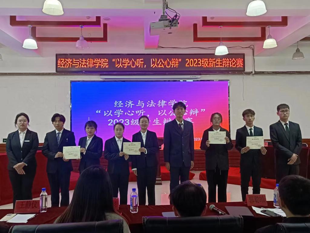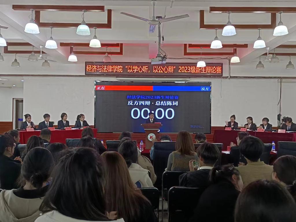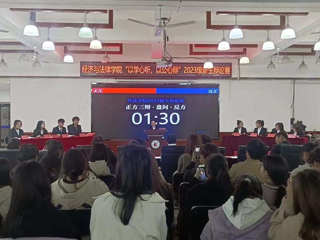 11月2日晚,经法学院于明德楼大学生活动中心举办“以学心听,以公心辩”主题辩论赛。本次辩论赛由金融23-2班白江悦主持,FH体育(国际)官方网站辩论队负责人、思辨社社长徐延伟、经法学院辩论队队长韩雨彤、副队长郭聪皓以及经法学院分团委副书记、学生会主席团成员和各部门负责人出席活动并担任评委,2023级全体学生参加本次活动。