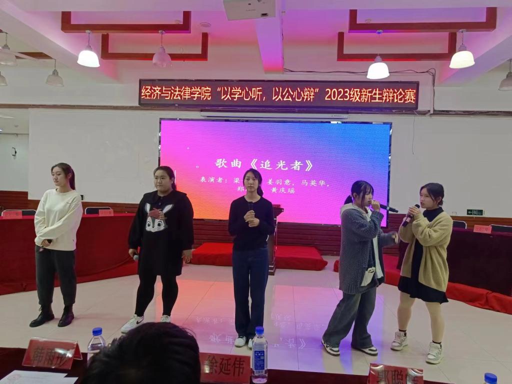 本次辩论赛分为两场,分别以“熬夜是现代人的病还是现代人的药”“下班后工作消息该回还是不该回”为辩题。辩论过程中,双方一辩开篇陈词,针对社会现象展开论述,紧接着,双方辩手根据辩题引证辩驳,巧妙地指出对方的漏洞。辩论过程精彩纷呈,场上辩手唇枪舌剑,赢得了现场观众的阵阵掌声。在自由辩论环节中,双方辩手结合自身经历,多角度阐述各自观点,呈现了一场场妙语连珠、异彩纷呈的思辩盛宴。整场比赛慷慨激昂,为现场观众展现了言辞对抗的精彩魅力。中场休息时,梁子彤、姜羽意、马英华、郑斯佳、黄庆瑶五位同学为大家带来歌曲《追光者》,韦敏玲、何运来为大家带来舞蹈串烧,呈现了一场精彩的视觉盛宴。