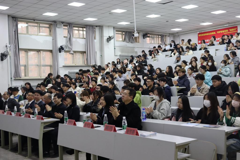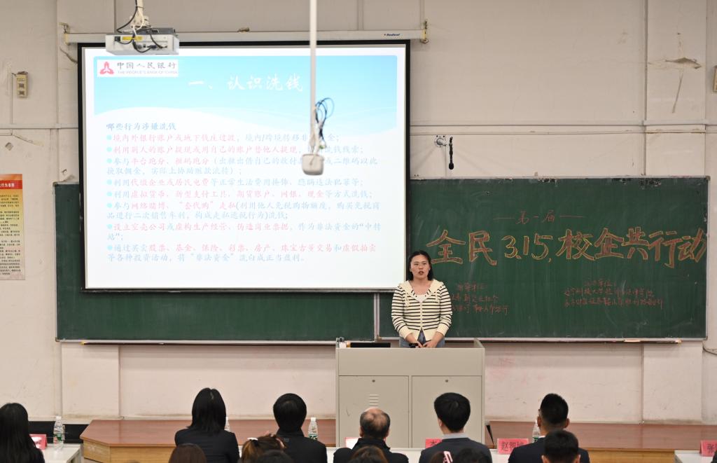 活动伊始,中国人民银行鞍山分行副行长刘纪首先致辞,随后由东方财富证券鞍山营业部工作人员姜英东作《走进基金的世界,开启我的第一堂基金课》主题宣讲。中国人民银行科员韩玮为同学们普及了反洗钱常识及对应的公民义务,带领大家了解到什么是洗钱、洗钱相关法律法规、洗钱的危害以及反洗钱监管体制等,并通过洗钱案例警示大家远离洗钱,勇于举报洗钱活动。随后易方达基金公司代表向同学们介绍了基金从业和职业生涯规划等方面的内容,并从自身出发,分享职业经历,让同学们对基金运行和基金市场产生了更直观、更深入的认识。讲解过后,同学们针对当前基金环境和未来发展方向提出了自己的困惑和想法,代表们给予了耐心且详细的解答。最后,学院党委书记赵智博作总结发言,他首先对各企方代表的到来表达了感谢,宣布由东方财富证券鞍山营业部携手FH体育(国际)官方网站经法学院举办的第一届“全民3.15,校企共行动”活动正式开启,并表示此次活动在指导大学生就业实践方面具有重要意义,鼓励同学们积极参与其中,同时期待未来校企继续携手与时俱进,协同育人,实现双向奔赴。