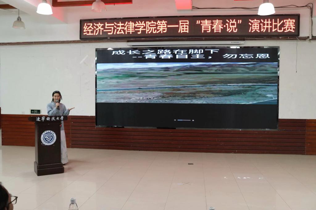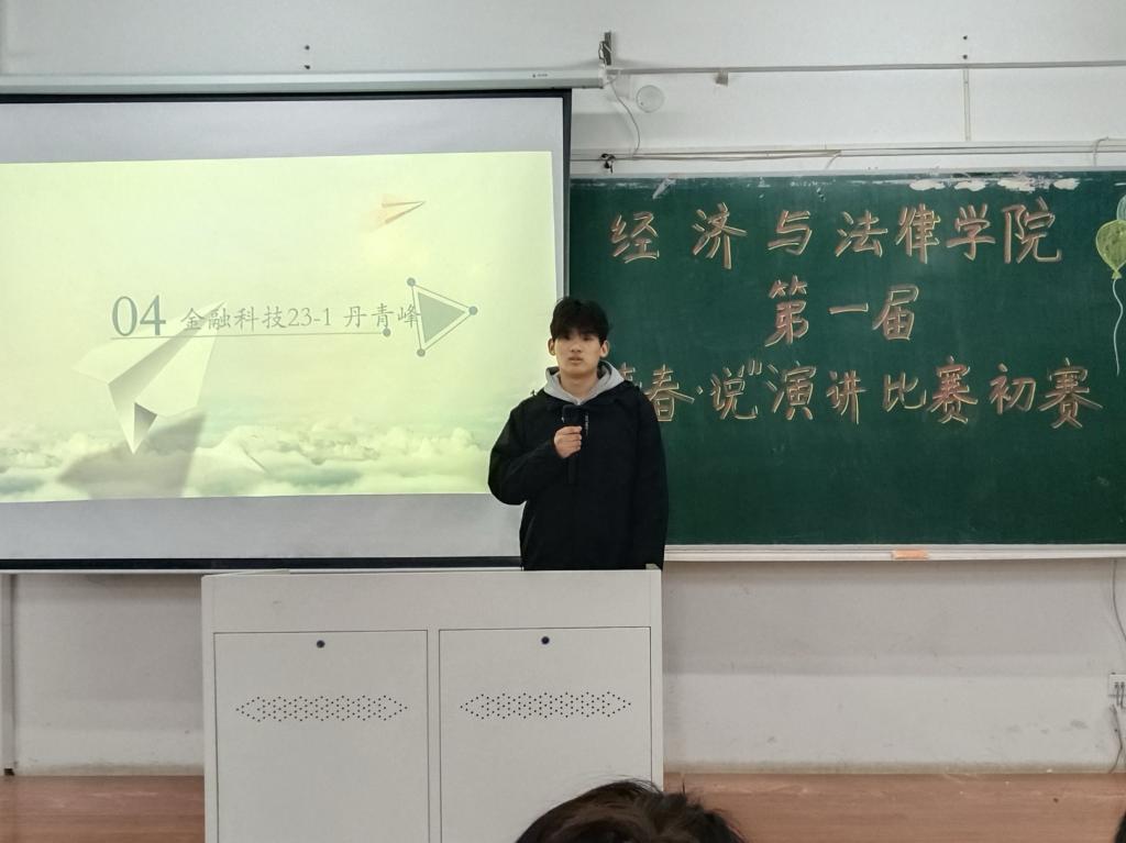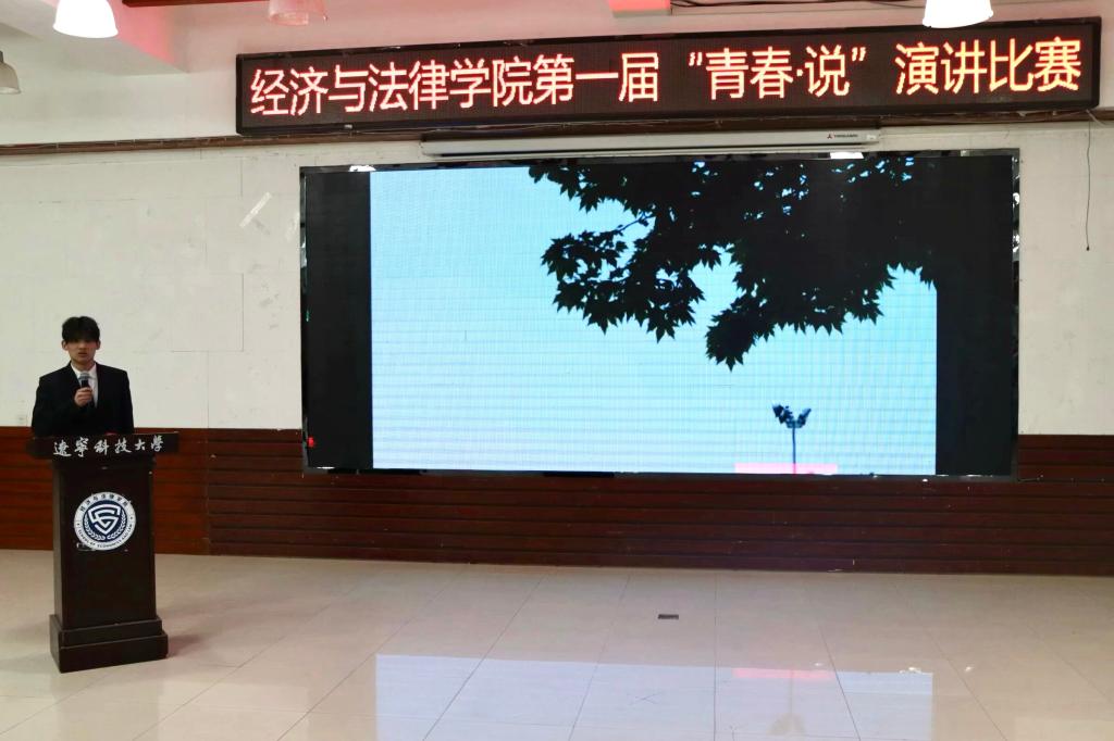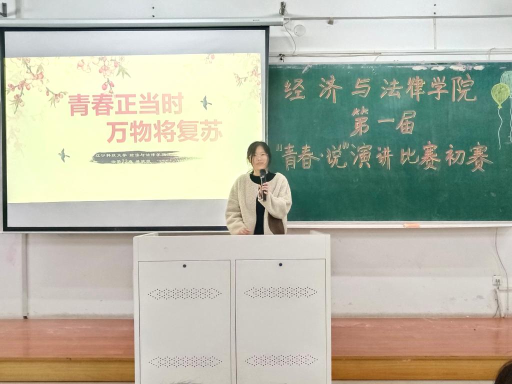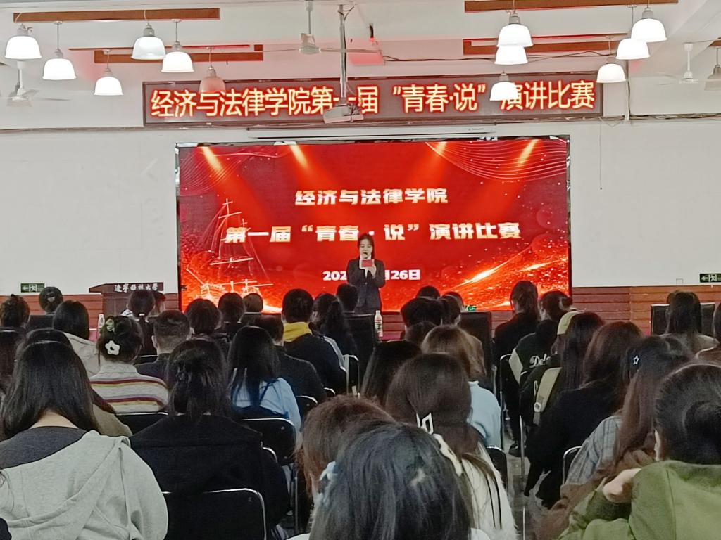 3月27日,经法学院于明德楼大学生活动中心举办第一届“青春·说”演讲比赛。本次活动邀请东方财富证券鞍山营业部总经理吴超出席,经法学院党委书记赵智博、党委副书记张国华、团委副书记张鹏飞、团学骨干以及各年级学生代表近300人参加了本次活动。
