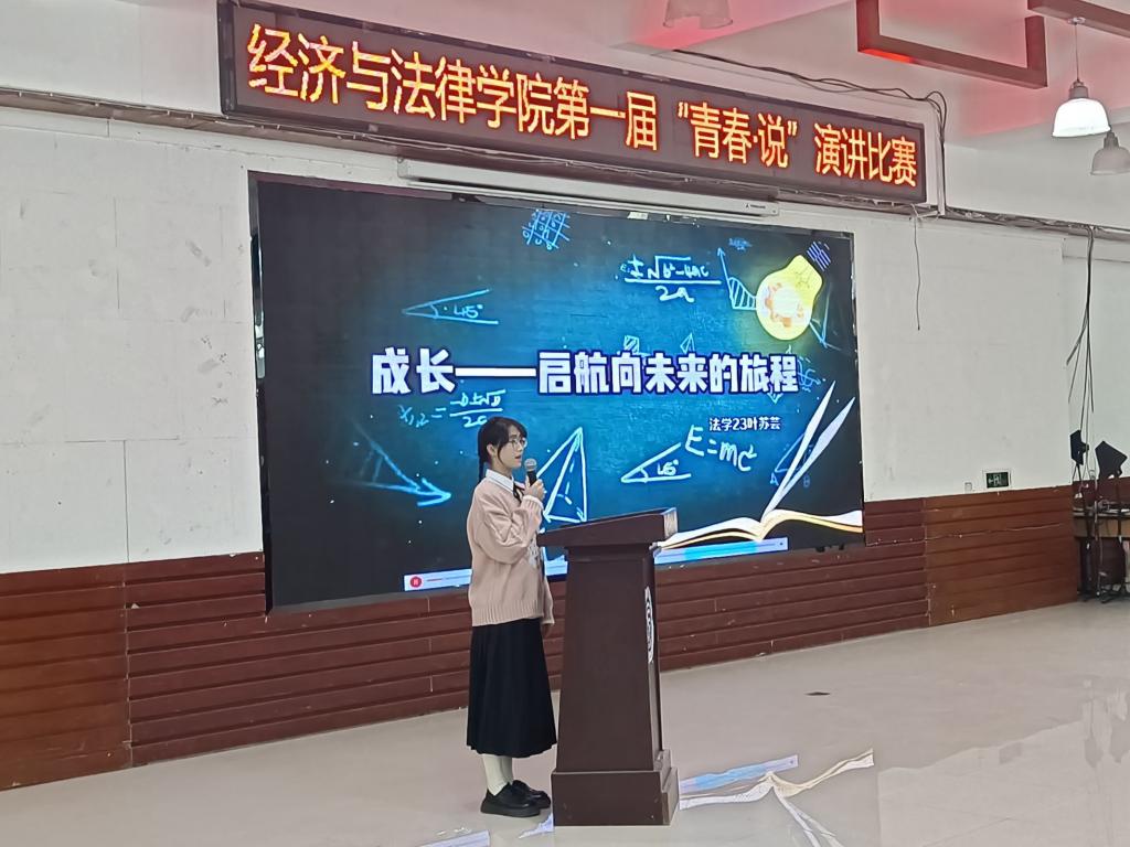 本次演讲比赛分为初赛、半决赛及决赛三个环节。初赛以“青春”为主题遴选出了10名选手。在半决赛中,选手们以“成长”为主题激情演讲,他们用充实的演讲内容和自然的肢体语言,讲述着自己独有的生活经历和成长感悟,用饱满的热情和真挚的感情表达着新时代青年的坚定的理想信念;他们用最动情的语言展现着人生中自我接纳、自我关照、自我突破的美好历程,表达了未来一路耕耘、一路成长的决心和希望。他们声情并茂、慷慨激昂的演讲赢得了在场评委和观众的共鸣与掌声,也鼓舞着经法学子以奋发向上的态度和昂扬的斗志面对未来的学习和生活。