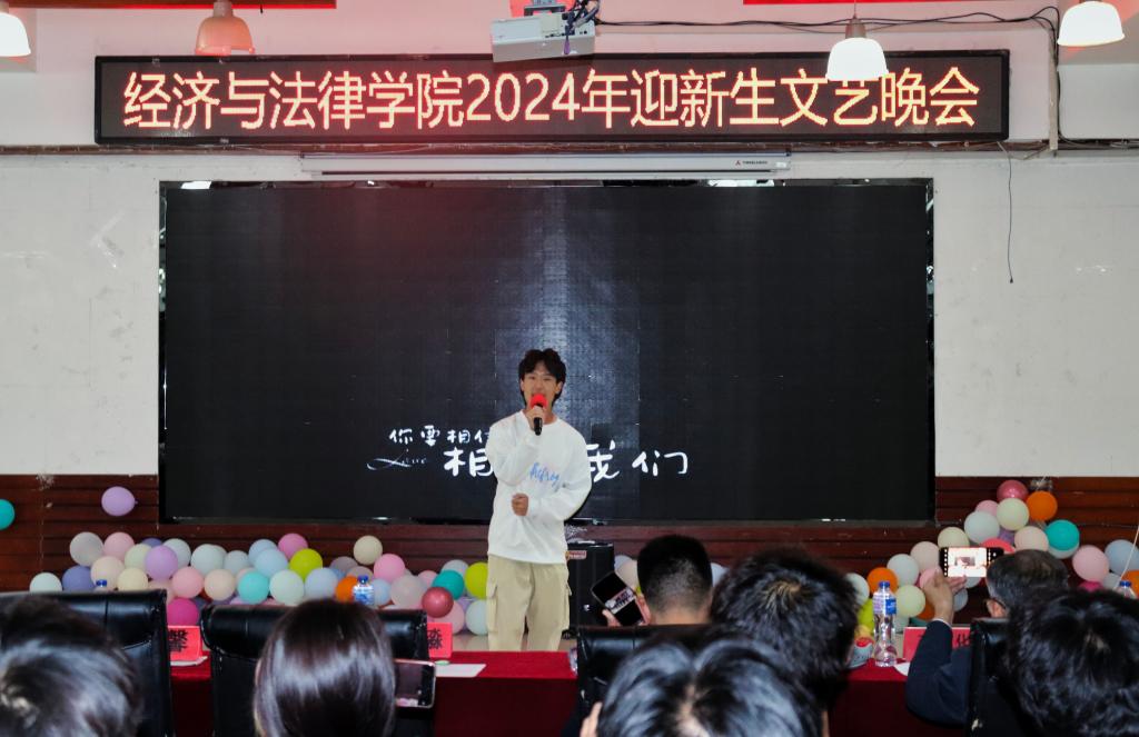 共赏中秋月,人间话团圆。9月17日晚,经法学院于明德楼大学生活动中心举办了以“中秋同国庆 师生共团圆”为主题的迎新生文艺晚会。学院党政领导及辅导员、团学骨干、新生班导生以及全体2024级新生近300人观看了本场演出。