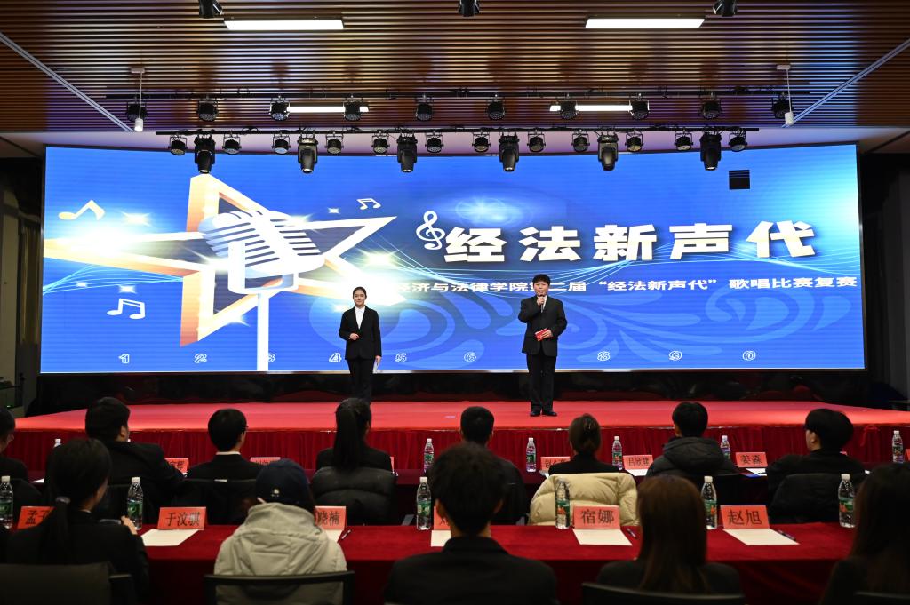 11月28日,经法学院于艺术馆举办第二届“经法新声代”歌唱比赛,经法学院团委副书记张鹏飞、学院团委、学生会各部门负责人以及各学院学生会文化活动部负责人出席并担任评委,经法学院2024级全体学生参加。