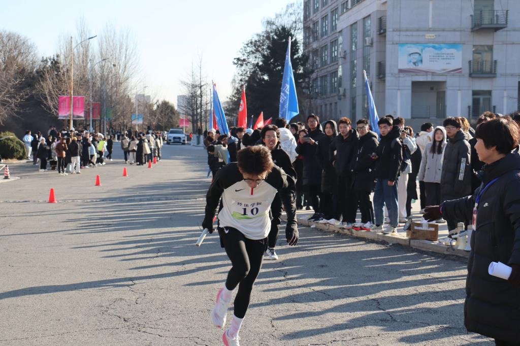本次比赛为男女双组竞技,各学院男女各10位运动精英,以环校接力的方式展开激烈角逐。上午9:00,随着一声发令枪响,比赛正式拉开帷幕。寒风凛冽,但运动员们的斗志丝毫未减。赛场上,运动员们你追我赶,每一次交接棒都充满了紧张与期待,每一次冲刺都凝聚着团队的力量与信念。赛道旁,欢呼呐喊声交织,冬日的寒意被这股青春活力驱散,激励着运动员们不断向前。当最后一抹身影划破终点线的那一刻,时间见证了努力的回报,汗水铸就的辉煌在阳光下熠熠生辉。
