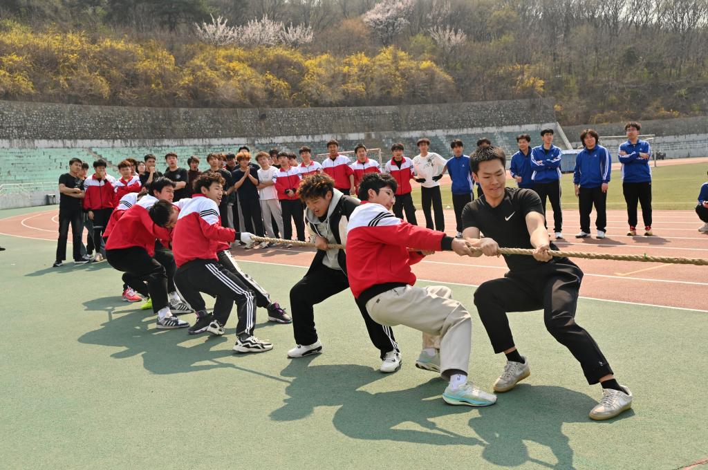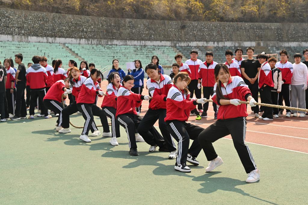 春风作伴,活力飞扬。4月15日下午,经法学院于主体育场举办2025年一站式学生社区“阳光寝室”趣味运动会。学院党委副书记张国华、团委副书记张鹏飞亲临现场,2024级全体同学展开激烈角逐,以蓬勃朝气展现青春风采,于协作拼搏中凝聚同窗情谊。