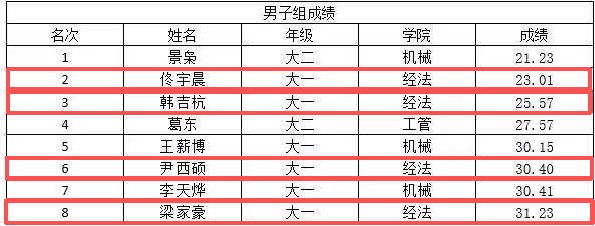 比赛现场,选手们沉着冷静、配合默契。经法学院代表队以清晰的路线规划、敏锐的方向判断和稳定的行进节奏,在众多参赛队伍中脱颖而出。学院女子组表现尤为突出:谷若羲以优异成绩勇夺第一名,侯璐萧稳健发挥获得第三名,程鑫源凭借顽强意志取得第五名的好成绩。男子组赛场同样捷报频传:佟宇晨凭借强劲的耐力与灵活的应变能力获得第二名,韩吉杭紧随其后斩获第三名,尹西硕与梁家豪分别取得第六名、第八名,为学院再添荣誉。最终,经法学院以领先第二名14分的绝对优势,勇夺团体总冠军。