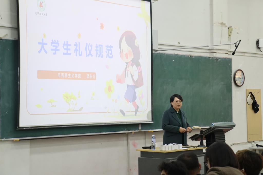 为引导学生养成良好行为习惯,提升文明素养与综合形象,11月11日,经法学院于博学楼A301举办“大学生礼仪规范”主题讲座。马克思主义学院项东方老师受邀为全体大一新生作专题报告。