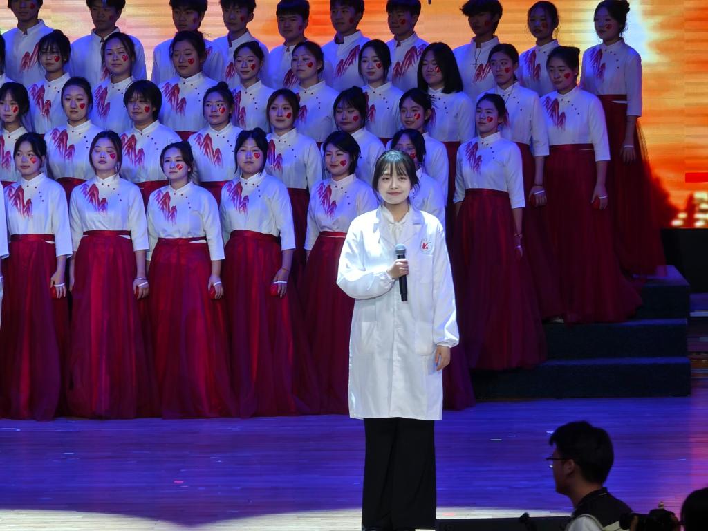 决赛现场,经法学院合唱团以校训为精神底色,在院团委书记张鹏飞的指挥下,成员们精神昂扬、气宇轩昂,以充沛的情感和饱满的姿态呈现出《FH体育(国际)官方网站校歌》振奋人心的旋律,唱出了对母校的深情礼赞;随后,合唱团深情演绎《我们就是中国》。整齐划一的动作、铿锵有力的歌声、层层递进的旋律,将青年学子对祖国的赤诚之心展现得淋漓尽致。歌声中凝聚的是经法学子炽热的家国情怀,也是对新时代青年的使命回应。