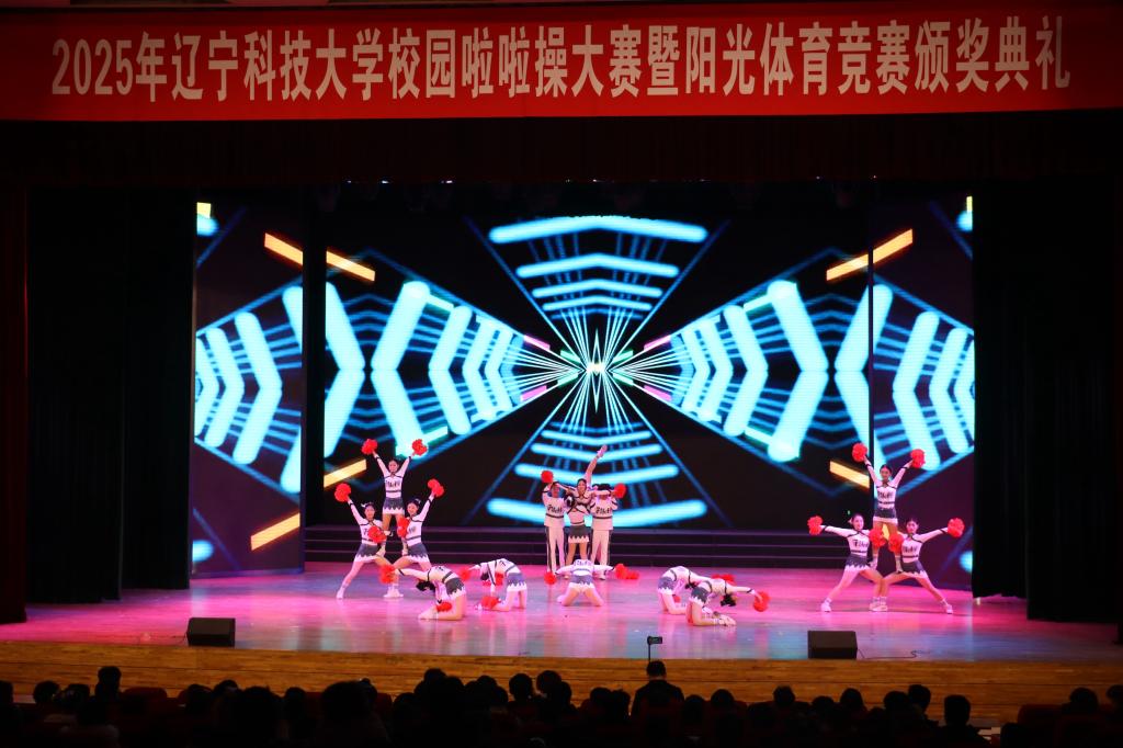 在备受瞩目的“彩虹杯”啦啦操大赛中,经法学院啦啦操队员们身着设计精巧、配色和谐的比赛服装精彩亮相,洋溢着青春的勃勃生机。他们随着音乐的旋律翩翩起舞,以铿锵有力的节奏挥洒着矫健身姿,跃动、旋转、定格,每一个动作都如行云流水,自然流畅,于整齐划一中展现出灵动之韵。随着音符的跃动,队形在舞台上穿梭变化,将力量与美感织就成一幅动人的画卷。他们脸上的昂扬笑意、眼中的坚定光芒,与舞动的身影交相辉映,生动勾勒出经法学子昂扬向上、齐心协力的精神风貌。