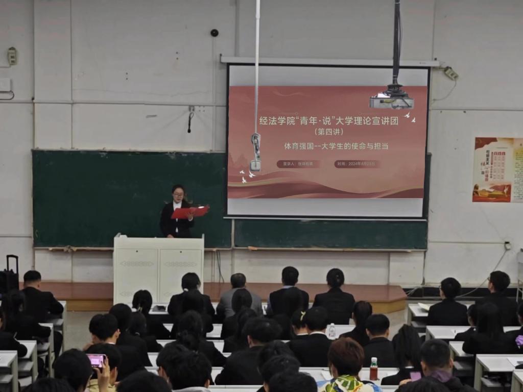 4月23日,经法学院于博学楼C302开展“青年·说”大学生理论宣讲,此次宣讲由学院“青年·说”大学生理论宣讲团成员、分团委副书记兼实践与社团指导中心负责人张诗晗琪担任主讲,经法学院全体团学骨干共计160余人参加活动。