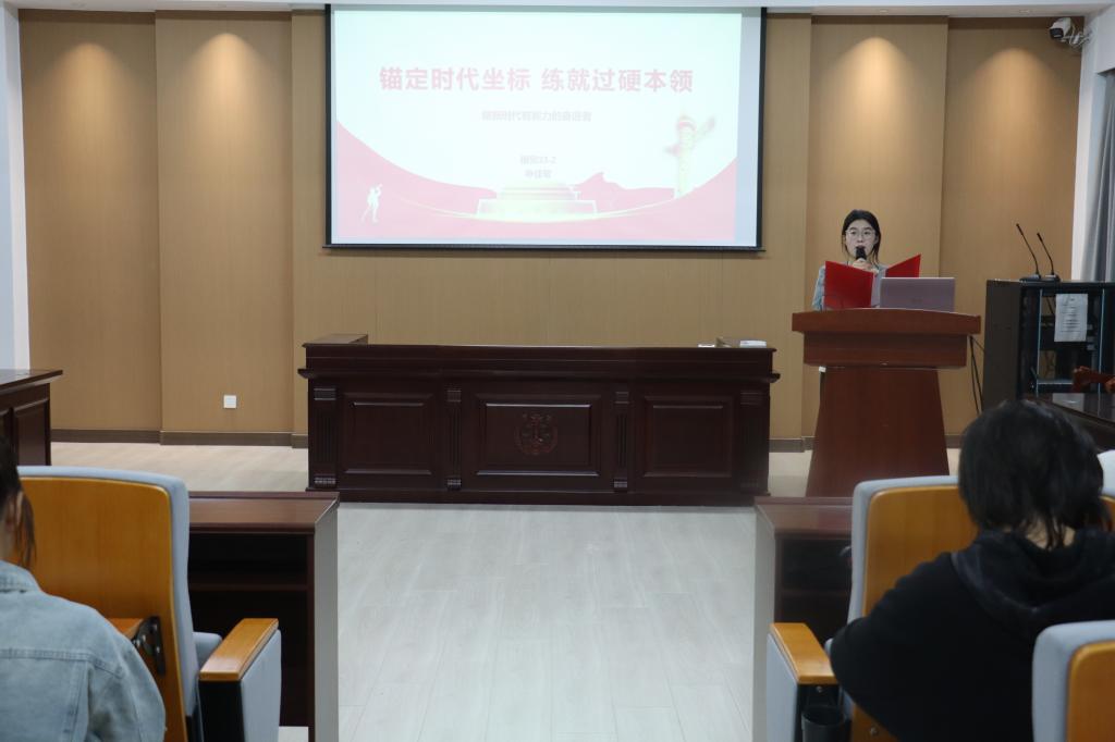 宣讲中,申佳鹭以“锚定时代坐标,练就过硬本领”为主题,紧密结合经法学院专业特色与时代发展需求,深入阐释新时代青年应如何在社会大潮中实现成长与担当。她指出,当代青年应在政治维度上站稳立场,在发展维度上锤炼专业,在社会维度上扎根基层,从而以实际行动回应时代的呼唤。同时,申佳鹭结合经法专业案例,向同学们发出倡议:主动接过前辈们的接力棒,在“三下乡”社会实践、基层法律援助等平台中历练自我,让青春在服务强国建设、民族复兴的伟大征程中绽放绚丽光彩。