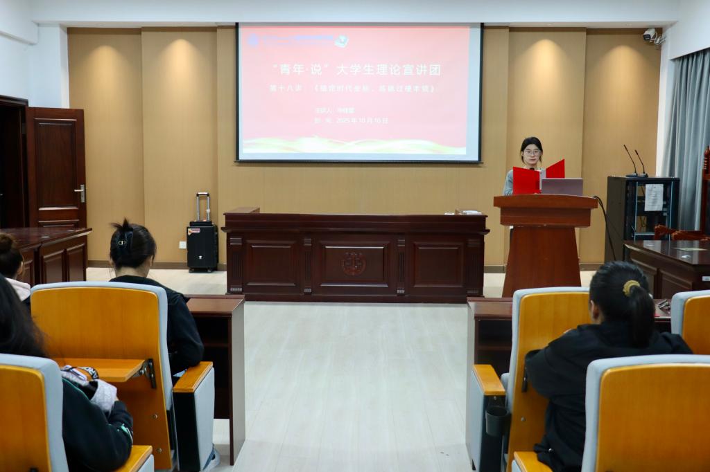 近日,经法学院于博识楼A402开展“青年·说”大学生理论宣讲活动。本次宣讲由学院“青年·说”理论宣讲团成员、经法学院学生会执行主席申佳鹭担任主讲,共计69名团员青年参加本次宣讲会。