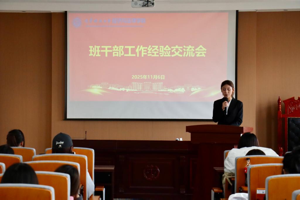 11月6日,经法学院于博识楼A402召开2025级班干部工作经验交流会。本次会议由法学252班姜懿轩主持,特邀2024-2025学年“优良学风班”和“先进班集体”班长作经验分享。院学办主任李路云及大二、大三主要班干部,2025级全体班干部参加。