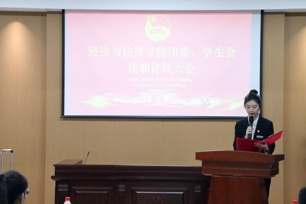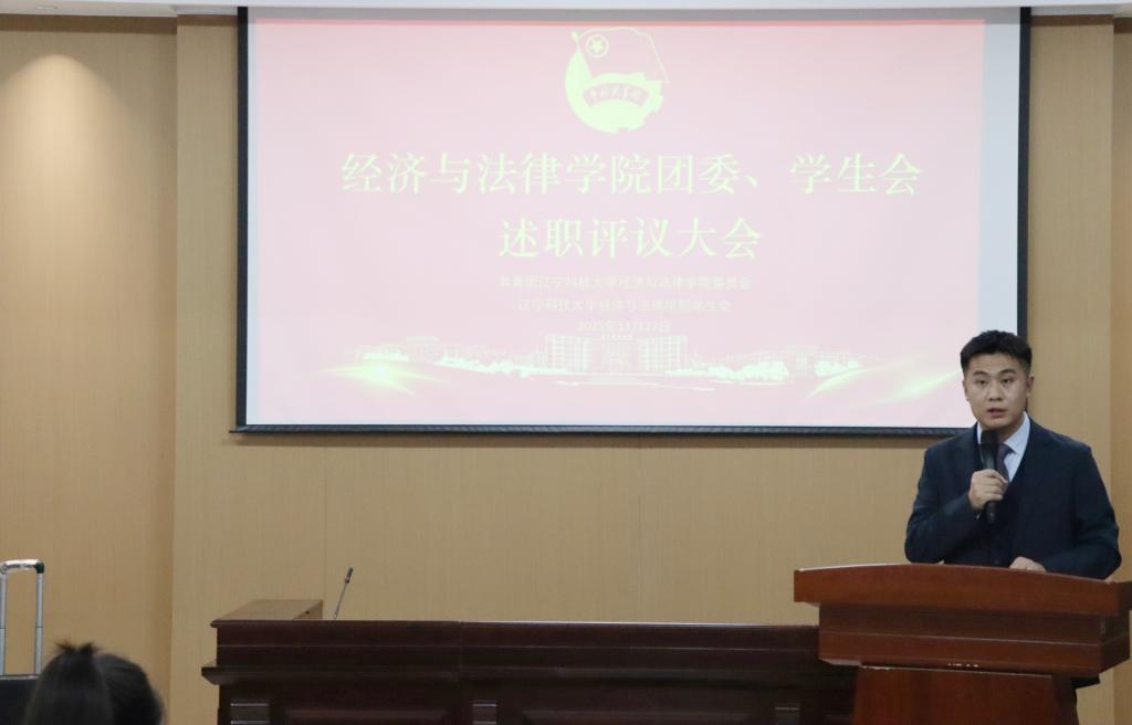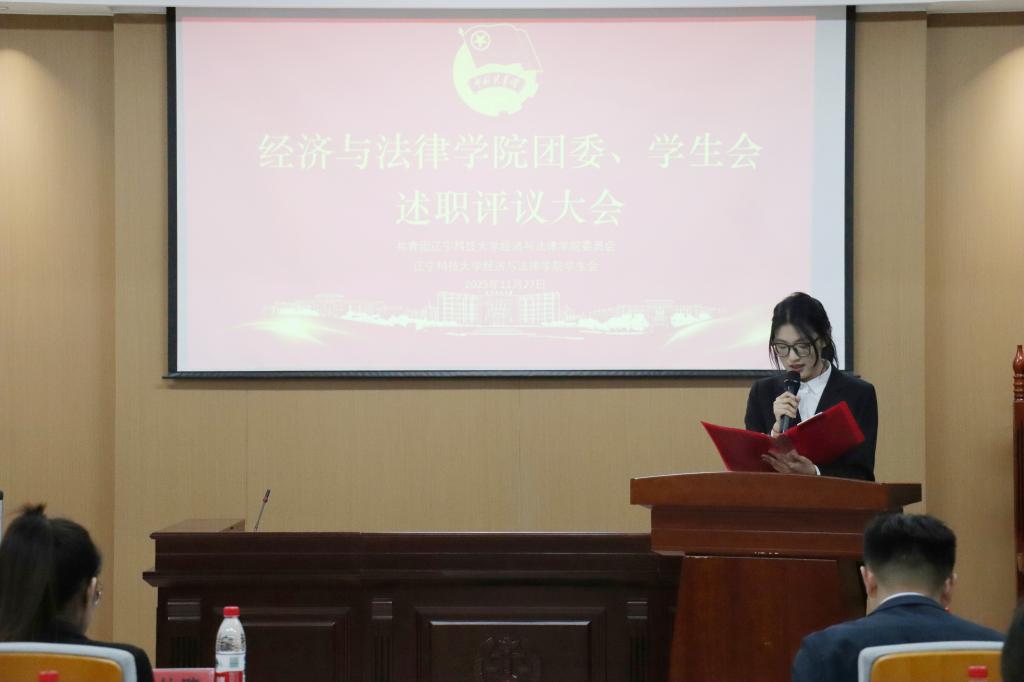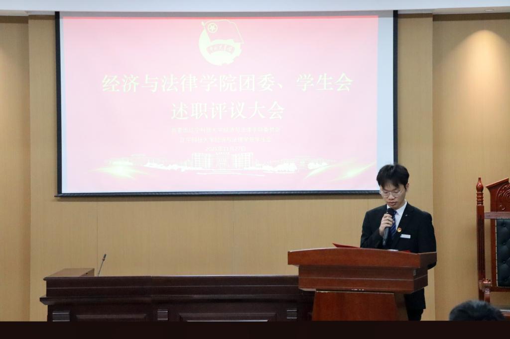 11月27日,经法学院于博识楼A402召开新一届团委、学生会述职评议大会。本次大会由学院学生会执行主席申佳鹭主持,学院团委书记张鹏飞及全体团学骨干出席会议。
