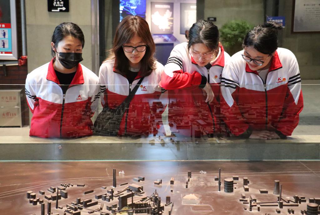活动当日,师生共同参观鞍钢博物馆。博物馆讲解员从馆内的巨幅画雕讲起,依次向大家介绍“钢铁摇篮”“火红年代”等11个主题展区,她生动地讲述了鞍钢从建国前在艰难困苦中筚路蓝缕、艰苦创业,到逐步成长为国家钢铁工业坚实支柱的发展历程。同学们在参观过程中,全神贯注地凝视着每一件展品,仔细阅读着每一段文字说明。同学们从一件件带着岁月痕迹、略显斑驳的实物展品,到一幅幅珍贵无比的历史照片中,真切感受到了鞍钢人在不同历史时期所展现的艰苦奋斗、勇于创新的精神品质。