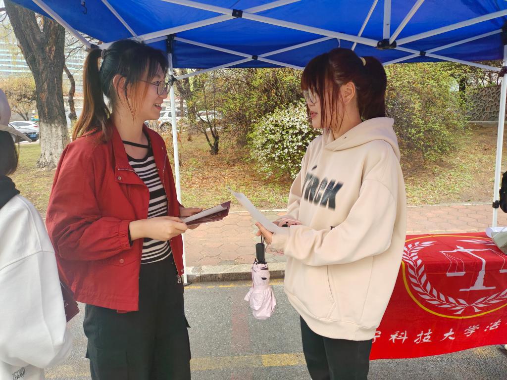 为深入贯彻落实总体国家安全观,增强学生国家安全意识和素养,4月15日,由经法学院团委主办、法律协会承办的国家安全教育日普法宣传活动在桃园餐厅门口顺利开展。