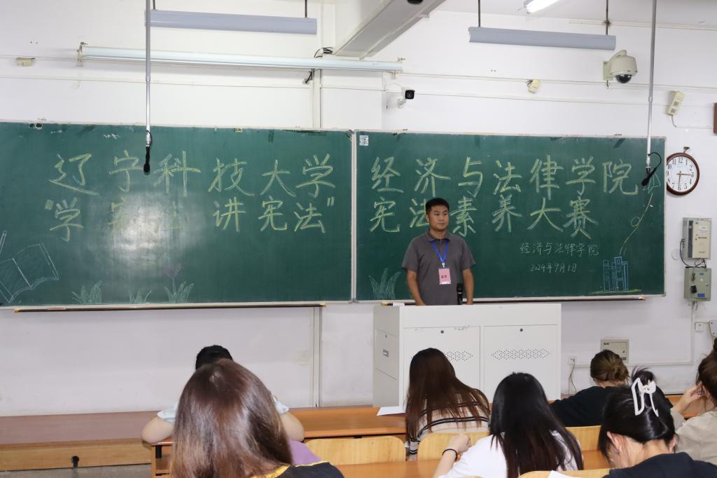 为全面学习贯彻党的二十大精神,深入学习贯彻习近平法治思想,9月1日下午,经法学院于博学楼C212开展2024年“学宪法,讲宪法”宪法素养竞赛。学院团委副书记张鹏飞以及学生会主席团成员共5人出席本次竞赛并担任监考员,学院近100名学生参加了本次竞赛。
