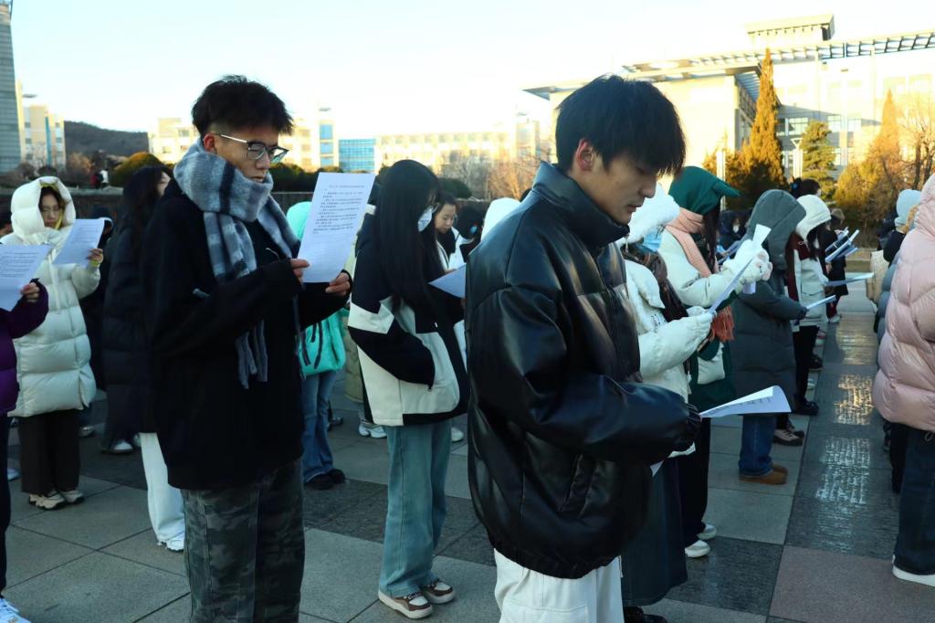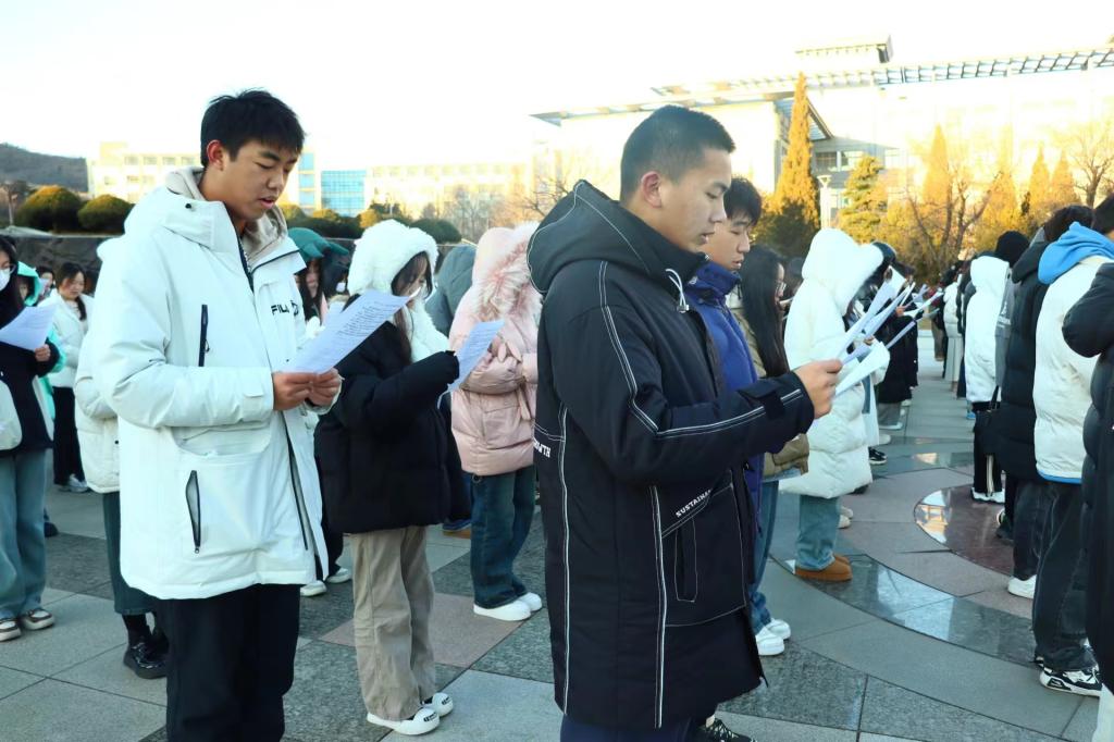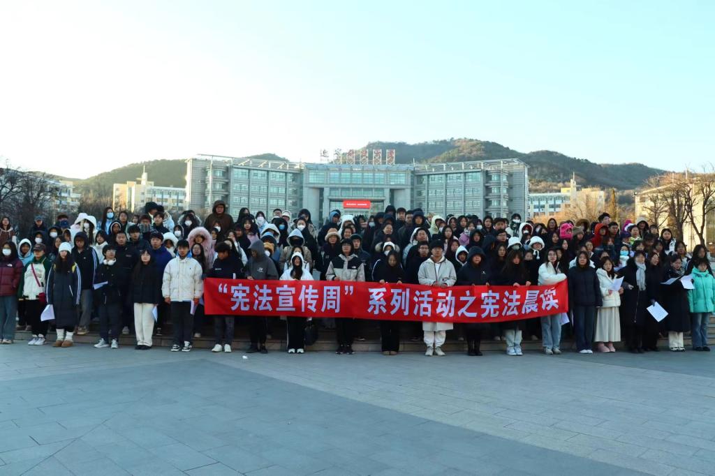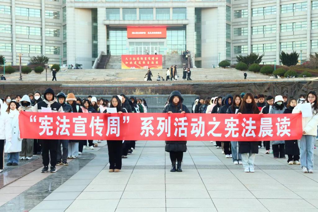 为增强学生法治意识,弘扬宪法精神,在国家宪法日到来之际,12月4日,经法学院于博雅广场开展宪法晨读活动,学院学生会主席团成员张涵担任主持人,近300名学生参与了本次活动。