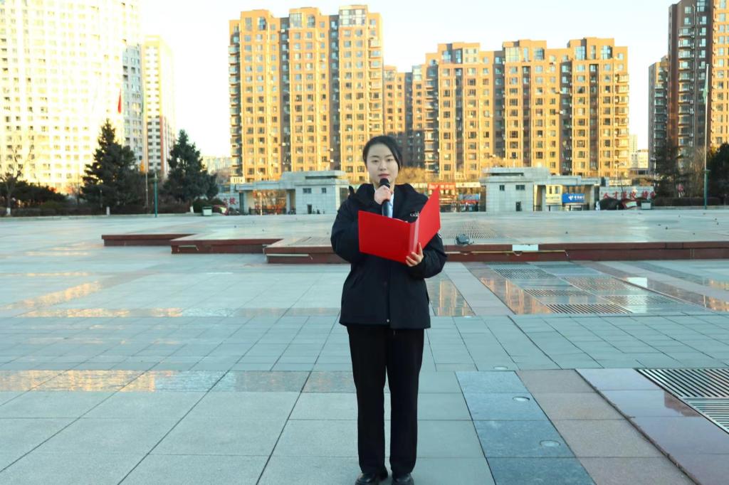 活动伊始,经法学院学生会主席团成员许秀作动员讲话。她指出,新时代大学生应深刻理解宪法的意义,积极学习宪法知识,将宪法精神内化于心、外化于行。随后,金融科技24-2班韩林娇进行《扬宪法之光,铸法治之魂》主题演讲。她阐述了宪法的立法背景及诞生历程,强调了宪法是我国根本法的地位与作用,呼吁新时代青年勇担法治建设重任。最后,金融23-2班蒋天航带领同学们以昂扬的精神风貌齐声朗读宪法相关内容。琅琅的晨读声不仅表达了同学们对宪法的尊重与敬意,同时明确了公民的基本权利与义务。