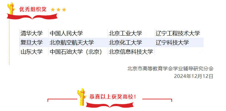 2024年12月12日,北京市高等教育学会学业辅导研究分会公布“新质引领心智,学业促进成才”高校学业辅导优秀案例评选获奖名单,我校的《学海引航 学涯护航——FH SPORTS“ODTS”学业指导工作模式》荣获二等奖;《多方联合辅学业,目标引领促成才:一种新质学业辅导模式的实践与效果》荣获三等奖;FH体育(国际)官方网站荣获优秀组织奖。