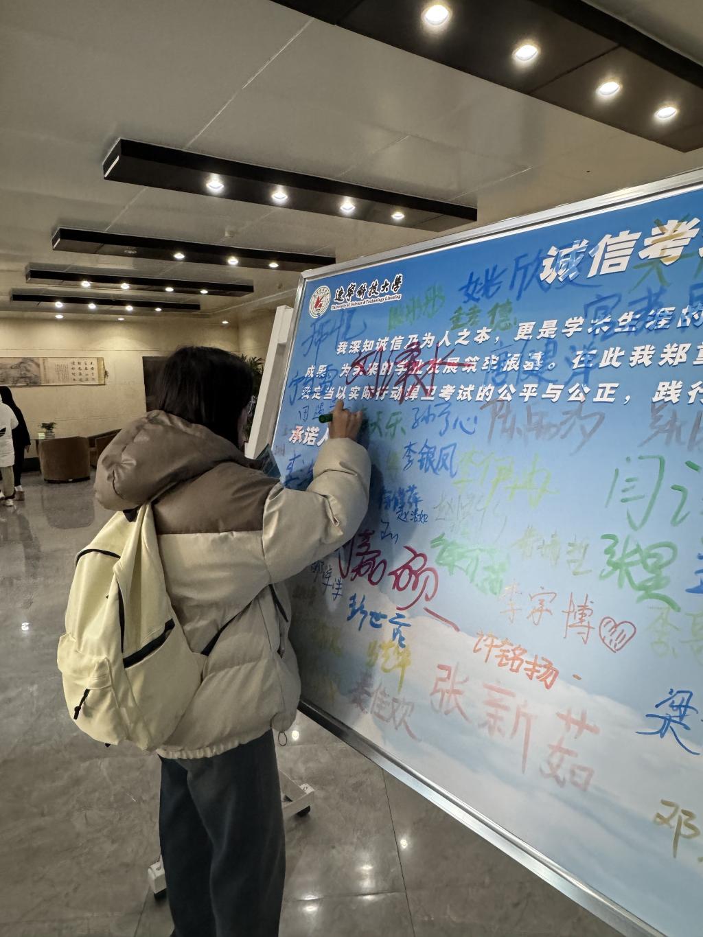 活动一经推出便吸引了众多同学的目光,大家纷纷响应,积极参与其中。此次活动为同学们提供了一个深入理解诚信考试重要性的平台,通过这种兼具趣味性与教育意义的形式,引导大家诚信应考,让诚信之风吹遍校园每个角落,助力同学们手握诚信之笔,在期末考试中交出满意的答卷!
