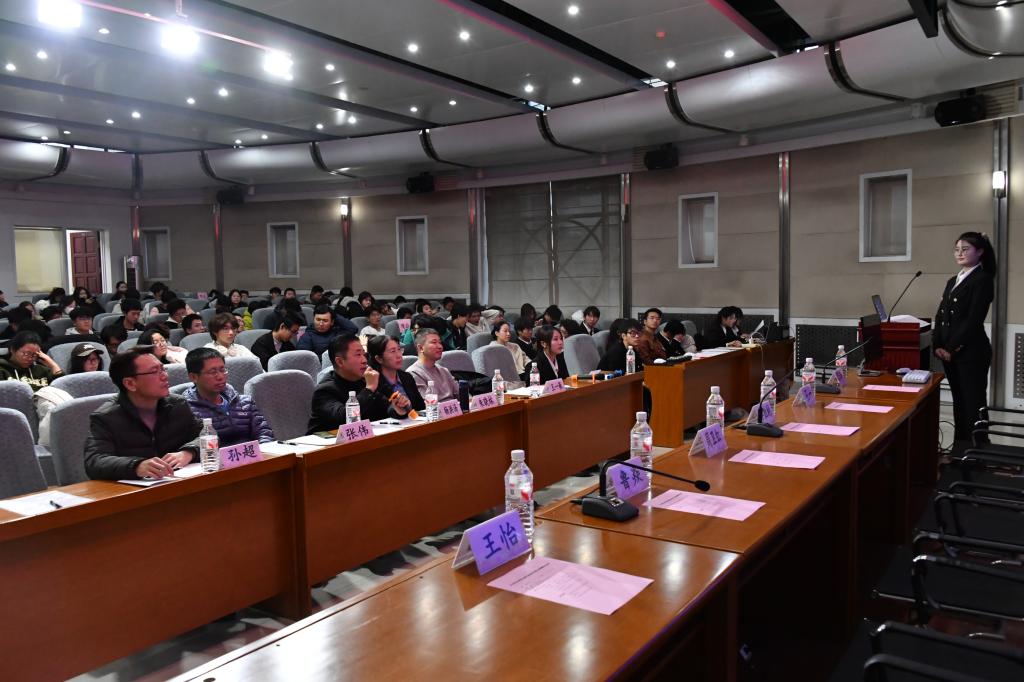 11月18日下午,由教务处、学生处、团委、图书馆联合主办,学生学业发展委员会承办的第九届学生课堂学习笔记大赛决赛在图书馆报告厅举行。相关单位负责人现场为获奖学生颁奖。教务处处长周卫红作总结讲话。120名2025级新生代表作为大众评审在现场观看比赛。