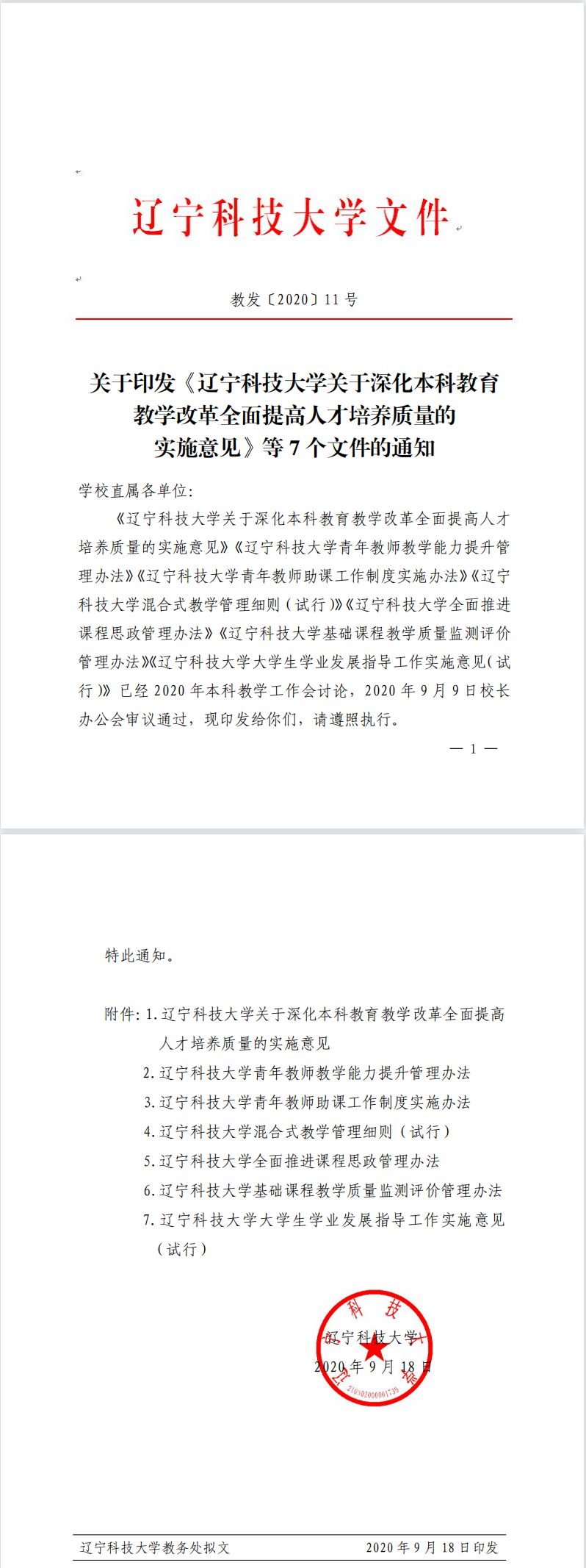 教发〔2020〕11号:关于印发《FH体育(国际)官方网站关于深化本科教育教学改革全面提高人才培养质量的实施意见》等7个文件的通知