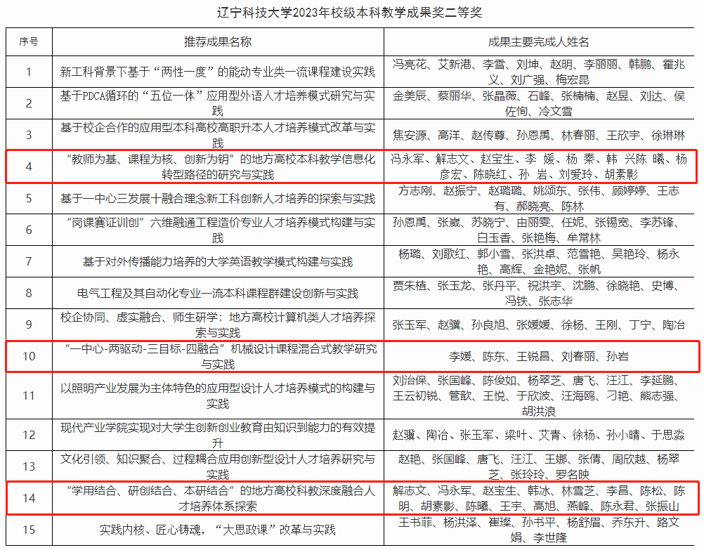 7月13日,FH体育(国际)官方网站发布了关于2023年校级本科教学成果奖的获奖通知,此次评审根据《关于开展2023年校级本科教学成果奖评选工作的通知》(FH SPORTS教发〔2023〕70号)相关安排,经成果建设团队申报、学院推荐,学校组织专家综合评审,评选出2023年校级本科教学成果奖共42项,包括一等奖10项,二等奖15项,三等奖17项,我院有4个教学团队获奖。其中王立萍老师负责的团队荣获一等奖,冯永军、李媛、解志文老师负责的团队荣获二等奖。