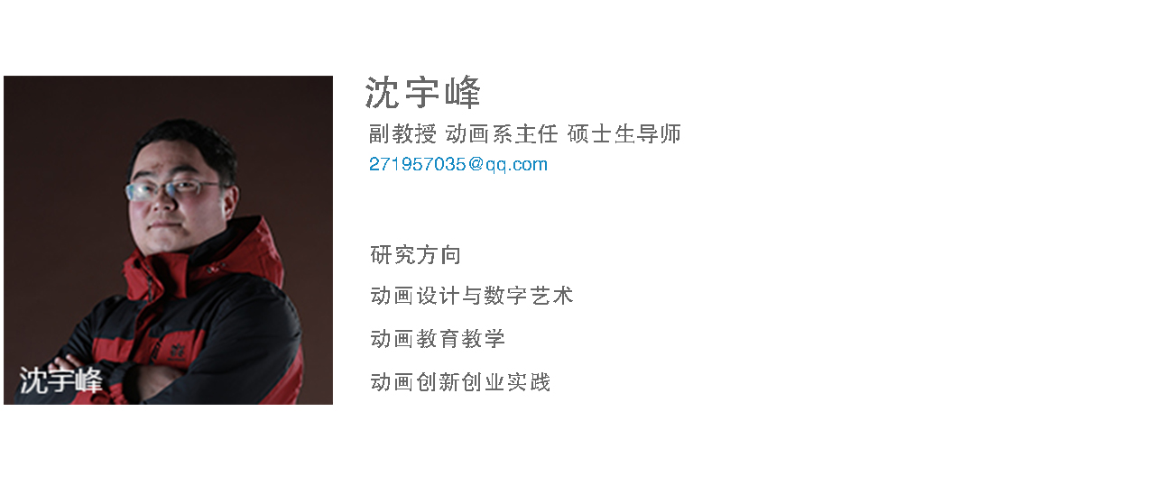 沈宇峰副教授,硕士,北京工业大学软件学院数字与艺术设计专业毕业。在中文核心期刊《电影文学》、《芒种》、EI检索期刊《IJET》以及国内学术期刊发表论文20余篇,参与出版“十二五规划教材”,承担辽宁省教育厅高等学校基本科研项目、FH体育(国际)官方网站教学改革项目,主持和完成横向科研项目2项,获得辽宁省美术家协会动漫艺术节优秀指导教师奖,指导学生获得北京电影学院动画学院奖及国家级省级各类比赛奖项20余项,指导国家级大学生创新创业项目,任教期间获得“FH体育(国际)官方网站青年教师讲课大赛二等奖”、“FH体育(国际)官方网站校级优秀毕业设计指导教师”、“FH体育(国际)官方网站院级教学质量优秀奖”,成立二维原创动画艺术工作室,完成各类动画作品30余部。