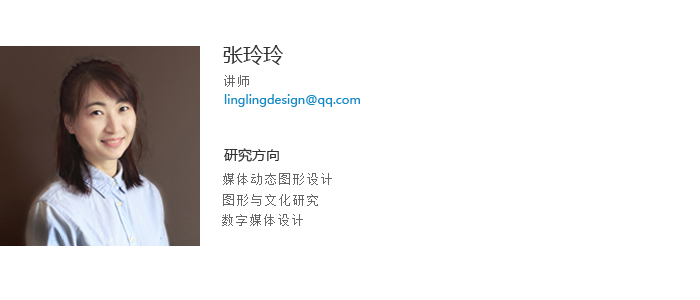 张玲玲讲师,硕士,鲁迅美术学院视觉传达专业毕业。于北京五谛数字艺术教育基地取得数字艺术从业资格。具有多年图形设计及数字媒体制作及教学经验。在《电影文学》、《艺术教育》、《美术大观》等专业刊物发表专业研究及教学研究论文多篇。指导学生发表论文数篇。参与出版教材一部,主持、参与FH体育(国际)官方网站青年基金项目多项。主持省级大学生创新创业训练1项,校级多项。获FH体育(国际)官方网站教学大赛三等奖,优秀毕业设计指导教师,指导学生获得全国大学生广告艺术大赛全国三等奖、辽宁赛区一等奖、二等奖、三等奖。获优秀指导教师称号。