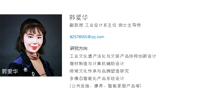 郭爱华,韩国庆一大学设计学博士,北京理工大学设计艺术学硕士(本硕博均工业设计专业)。曾获FH体育(国际)官方网站校级教学质量优秀奖两次;主持校级教改项目及教育科学研究课题共计十余项、省级教改项目主要完成人、主持及参与省校级教改成果奖一二三等奖共计十余项;曾获全国高校教师(本科)微课教学大赛辽宁省一等奖、全国多媒体课件大赛二等奖三等奖各一项、辽宁省教育软件大赛三等奖两项、校多媒体课件教学大赛一等奖、校优秀教案大赛一等奖二等奖;主编出版高等院校工业设计类“十二五”规划教材一部;主持中国科协青年智库成果、辽宁省社科联资助项目、辽宁省教育厅项目、鞍山市社科联项目等十余项;参与辽宁省自然科学基金项目、省精品资源共享课建设、省教育厅项目、市级科学计划项目等十余项;发表检索、核心论文多篇、教学研究论文多篇;授权实用新型专利和外观设计专利十余项;指导国家级省级大创项目若干、获校级大创年会一等奖两次二等奖一次;指导学生在A类学科竞赛中获一二三等奖若干、获辽宁省大学生工业设计大赛优秀指导教师。