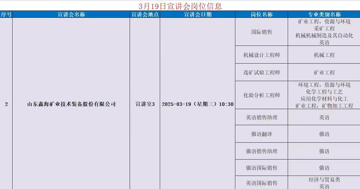 矿业工程学院三月宣讲会岗位信息