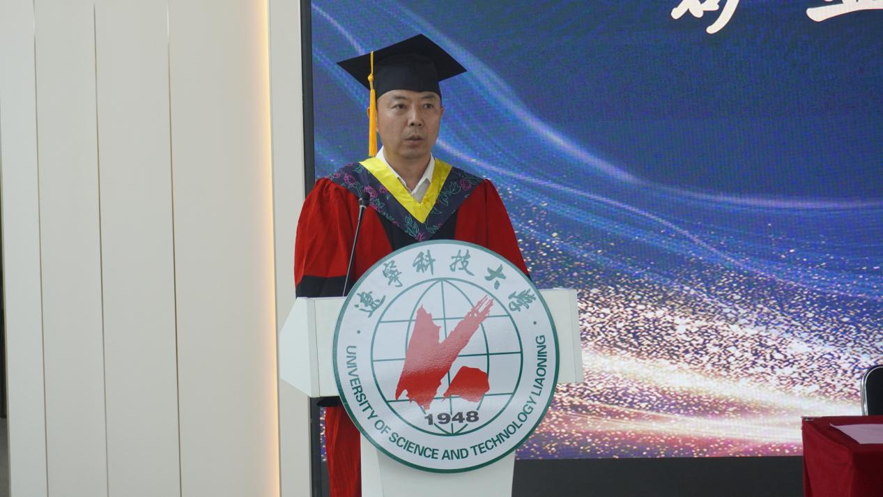 采矿 21-2 班李华哲作为毕业生代表登台发言,他的话语饱含深情,字字句句都传递着对学院的感恩与眷恋。他提到,矿业工程学院不仅教会了他们专业技能,更塑造了他们勇往直前的品格,这些宝贵的财富将伴随他们一生,激励着他们在未来的人生道路上无畏前行。