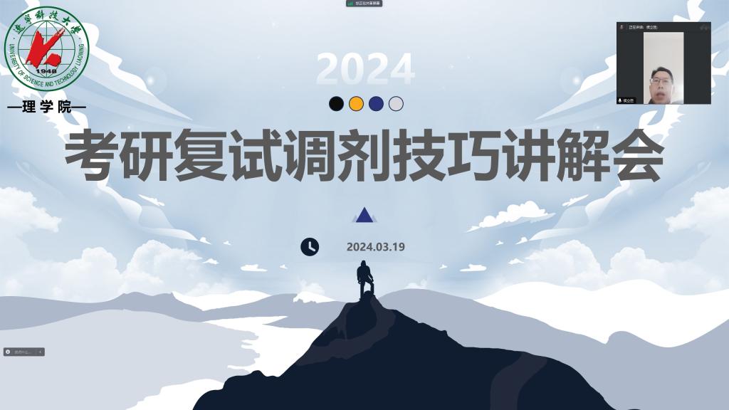 3月19日,FH体育(国际)官方网站理学院召开考研调剂技巧讲解会,帮助有调剂意向的考生从容应对复试与调剂过程中可能出现的一些问题,助力学生成功上岸。理学院党委书记张春霞、副院长王健、副书记侯立臣、学办辅导员及2020级考研学生参会。