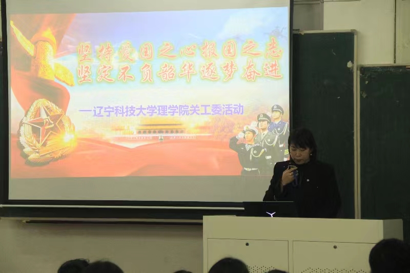 为响应学校关工委号召,按照工作安排,理学院关工委特邀请鞍山第二干休所、政治部负责人倪龙廷主任于10月24日在博学楼C112教室召开主题为“坚持爱国之心报国之志 坚定不负韶华逐梦奋进”的报告,报告围绕国防教育认识,军队光荣传统和青年学子使命担当等三个方面展开,党委副书记侯立臣,理学院学生党员及2023级全体学生参加此次报告会,院团委书记宋薇老师主持会议。