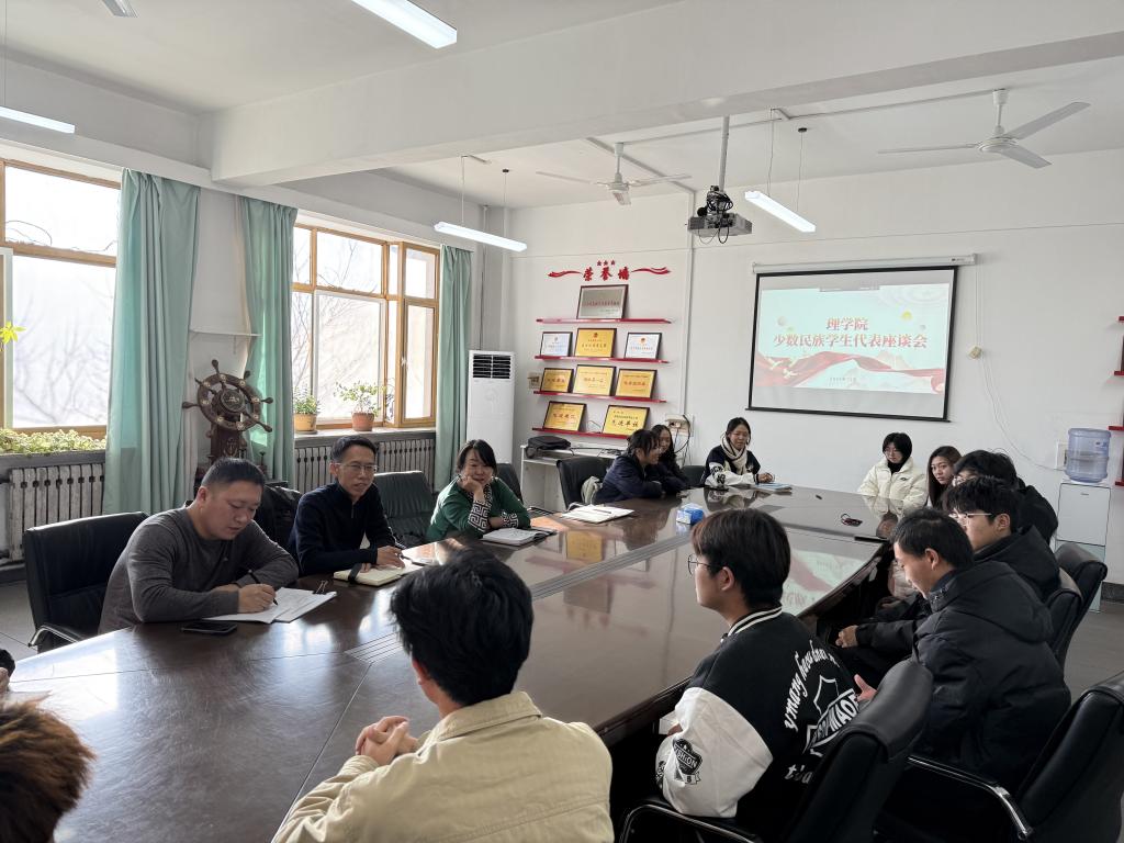 2024年12月2日,理学院在明贤楼B311会议室成功举办了少数民族学生代表座谈会。本次座谈会旨在加强党的民族政策宣传教育工作,学习贯彻党的民族工作政策和宗教工作方针,同时深入关心关注少数民族学生的学习和生活情况。学院党委书记张春霞、党委副书记侯立臣、副院长王健同志出席会议,学院团委书记宋薇老师主持会议。